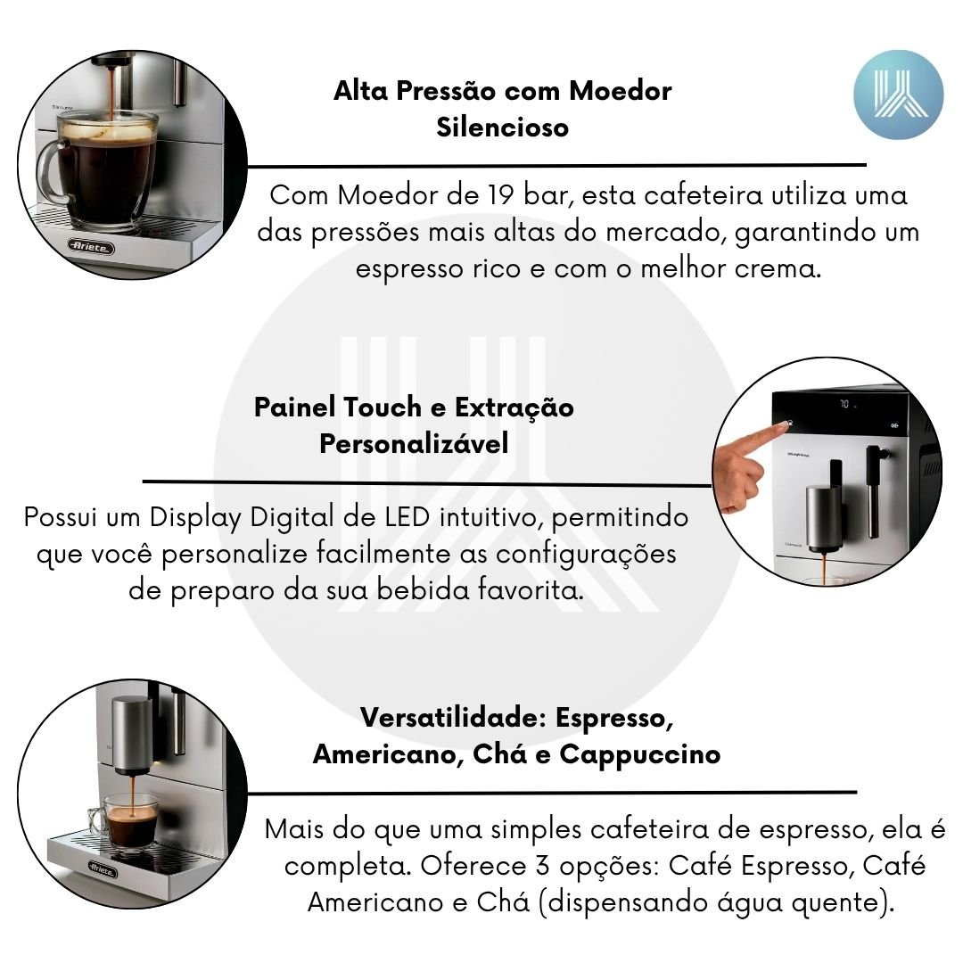 Versatilidade: Espresso, Americano, Chá e Cappuccino