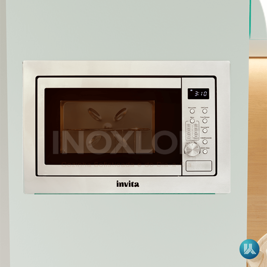 O Micro-ondas Invita Inox 25 L Built-in é a escolha perfeita para quem busca velocidade, sofisticação e funcionalidades avançadas na cozinha gourmet. Este modelo de embutir apresenta um elegante Acabamento em Aço Inoxidável, garantindo beleza, durabilidade e uma integração perfeita aos seus armários. Com 25L de capacidade e um amplo Prato Giratório de 31,5 cm, ele acomoda grandes receitas com praticidade. O grande diferencial é a Função Grill elétrico, que permite não só esquentar, mas também assar, dourar, grelhar e gratinar os preparos. A inovadora Função Combinada soluciona o problema de finalização, executando o cozimento no micro-ondas seguido pelo grill no mesmo programa. Com um total de 13 Funções (incluindo 8 de cozimento, 2 combinadas e descongelamento), e Trava de Segurança para evitar reprogramação acidental, o micro-ondas Invita entrega precisão e segurança.