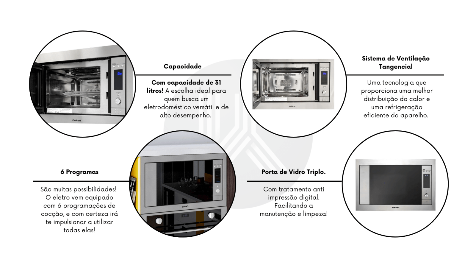 Tecnologia 3 em 1 de Luxo: Este diferencial resolve o problema da falta de espaço na bancada. Ele integra as funções de Micro-ondas, Grill e Convecção, permitindo preparar desde pratos rápidos até assados complexos com qualidade de alto padrão.
