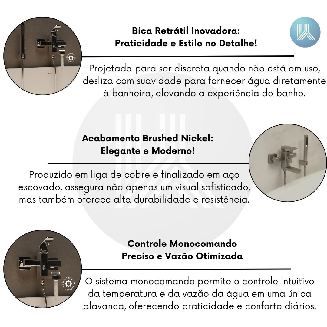 Essa tonalidade (níquel escovado) confere um toque moderno e exclusivo que garante o destaque da peça em qualquer sala de banho. Produzido em liga de cobre e finalizado em aço escovado, este acabamento assegura não apenas um visual sofisticado e elegante, mas também oferece alta durabilidade e resistência à corrosão, mantendo a beleza por muito mais tempo.