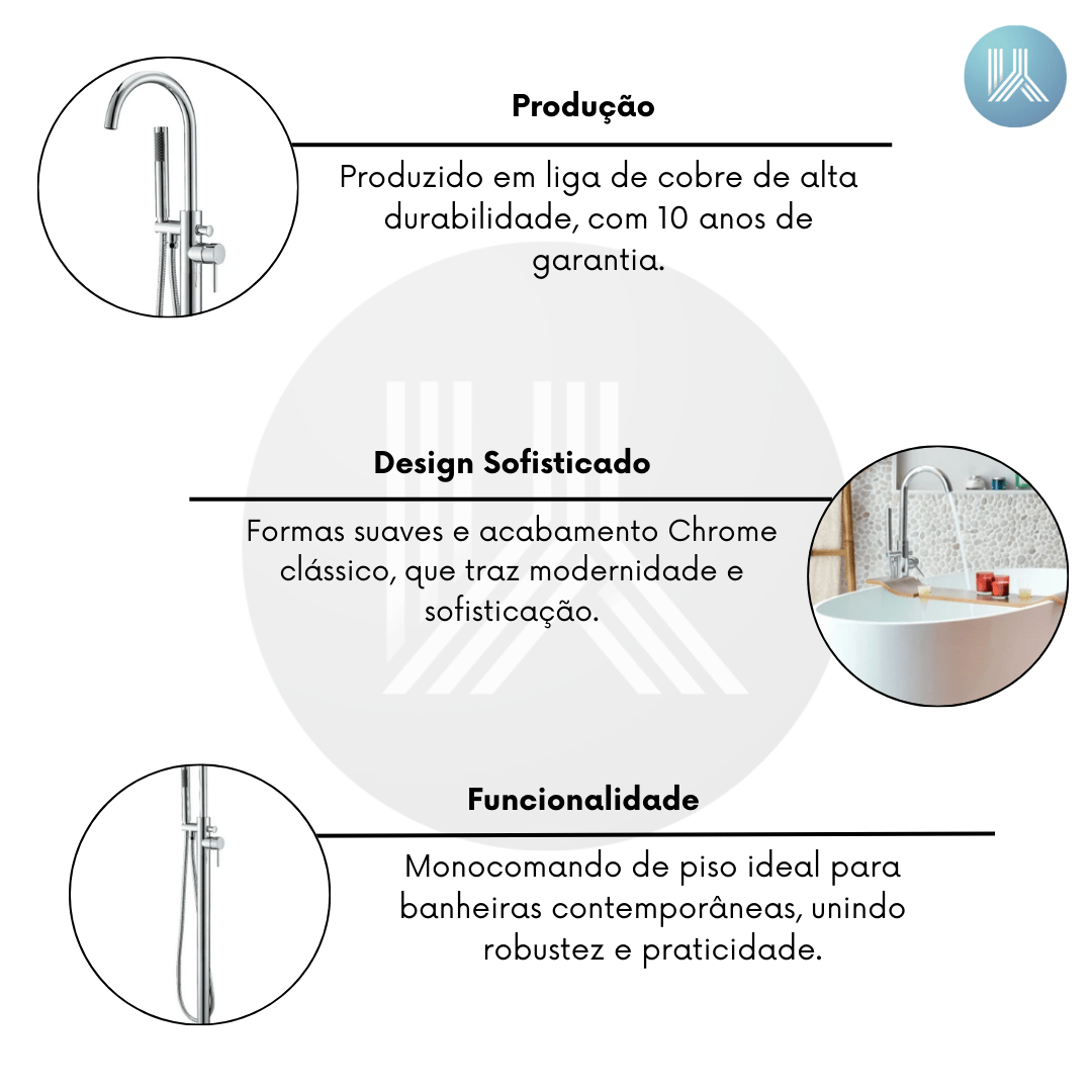 O Monocomando de Piso para Banheira Amazon Chrome é a escolha certa para quem busca funcionalidade, sofisticação e resistência em banheiros contemporâneos. Suas formas suaves e arredondadas trazem leveza ao ambiente e se integram facilmente com outros metais, criando uma composição harmônica e elegante.