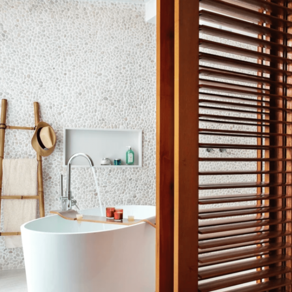 Design Sofisticado: Formas arredondadas que harmonizam com banheiras de imersão e metais modernos.