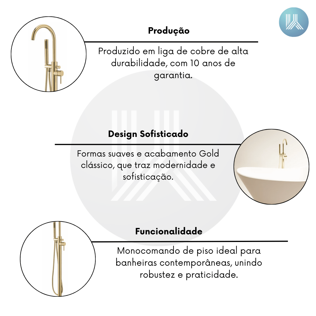 Fabricado em liga de cobre de alta resistência e com acabamento dourado de última geração, o Monocomando Amazon Gold é uma peça robusta e durável, acompanhada de 10 anos de garantia, garantindo confiança e qualidade por muitos anos.