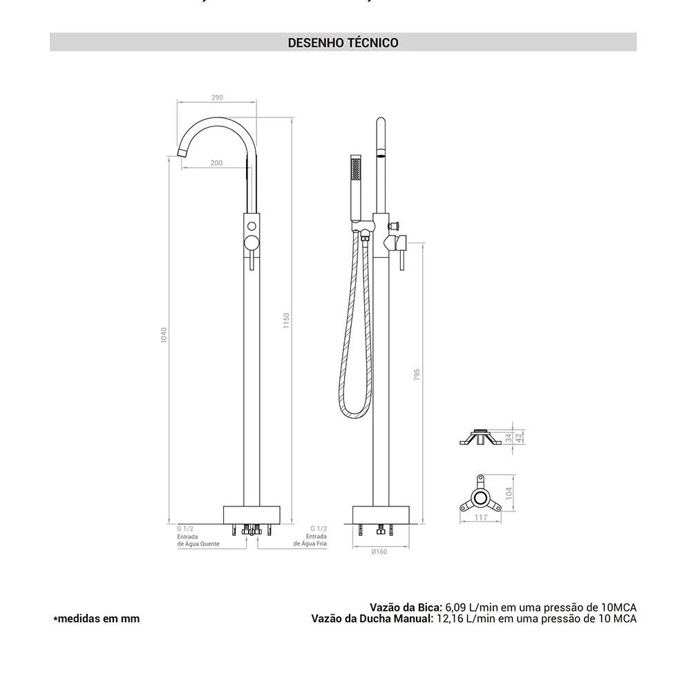 O monocomando é desenvolvido em liga de cobre de alta durabilidade, um material que assegura longa vida útil e resistência à corrosão. Com uma vazão otimizada na bica (12,7 L/min) e na ducha manual (9,1 L/min), a peça oferece um desempenho eficiente no enchimento da banheira e no uso da ducha, garantindo o máximo de conforto.