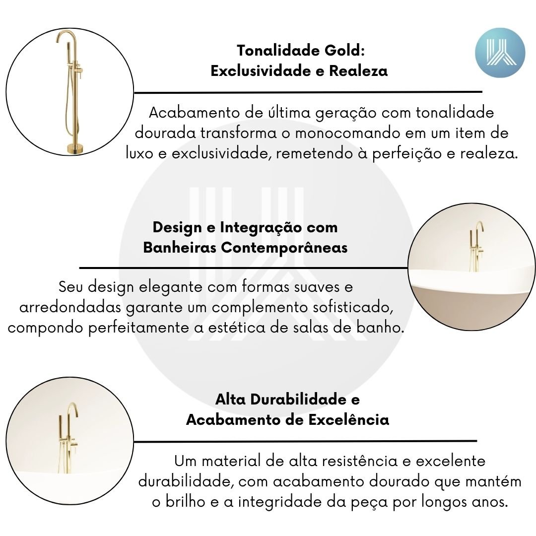 Elegante e funcional, o Monocomando de Piso para Banheira da linha Amazon é uma peça com formas suaves e arredondadas, sendo perfeito para vestir salas de banho versáteis e contemporâneas. A linha foi criada através de uma inspiração no Rio Amazonas, o maior rio em volume de água do mundo, pois foi motivado pela intensa travessia desse recurso natural abundante que este metal foi desenvolvido. Sua tonalidade Gold (dourado) remete à perfeição, iluminação e realeza, e este monocomando veio para vestir de forma exclusiva diversos ambientes relaxantes com sofisticação.