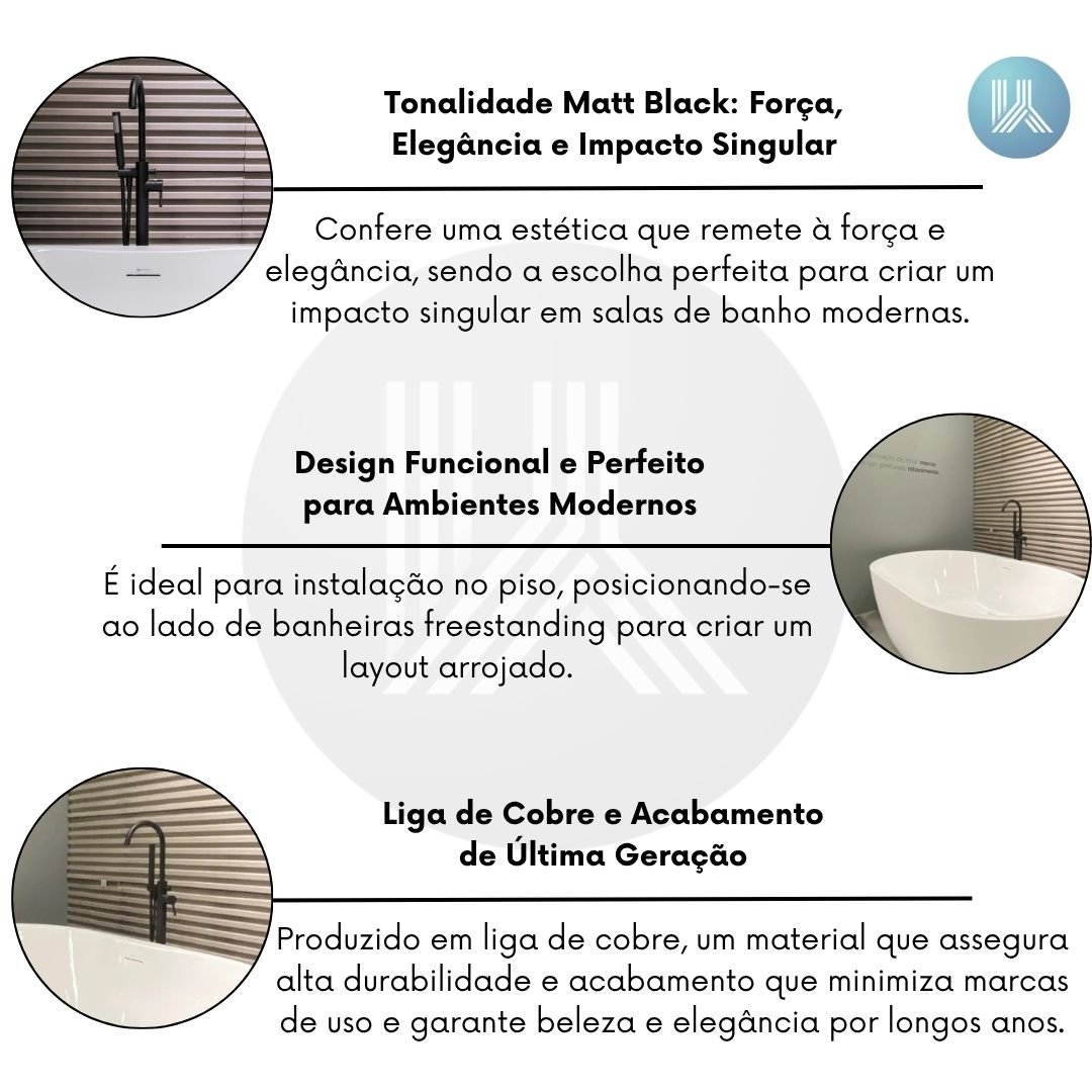 Confere ao monocomando uma estética que remete à força e elegância, sendo a escolha perfeita para criar um impacto singular em salas de banho modernas. Este acabamento preto fosco de alta durabilidade é desenvolvido para surpreender e encantar, adicionando um toque de sofisticação minimalista ao seu projeto.