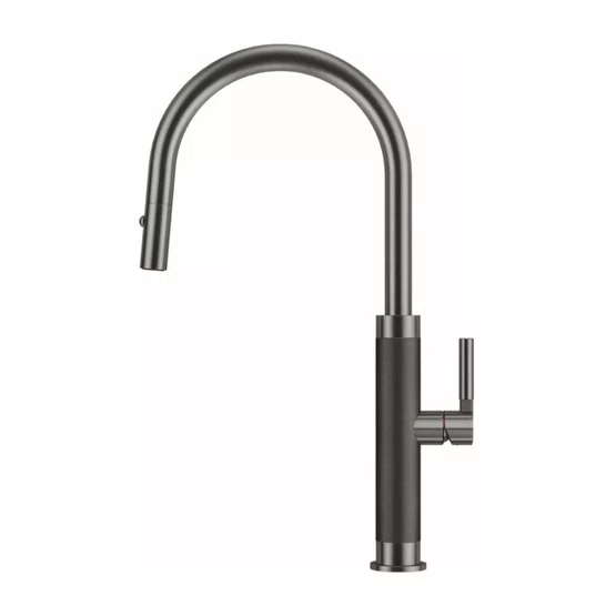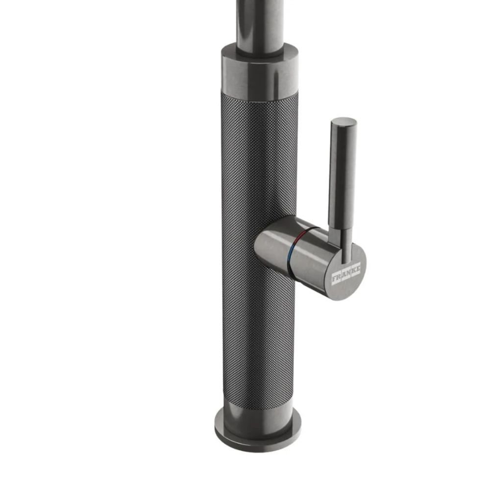 O Misturador Monocomando Franke Masterpiece Antracite é a escolha certa para quem deseja aliar sofisticação, tecnologia e funcionalidade na cozinha. Premiado internacionalmente pelo design e pela inovação, ele se destaca pelo corpo texturizado de aço inox 304, altura imponente e acabamento PVD resistente, que preserva a cor e garante longa durabilidade. Com mangueira flexível e duplo jato, oferece praticidade em cada uso, além de combinar perfeitamente com a Cuba Masterpiece Antracite.