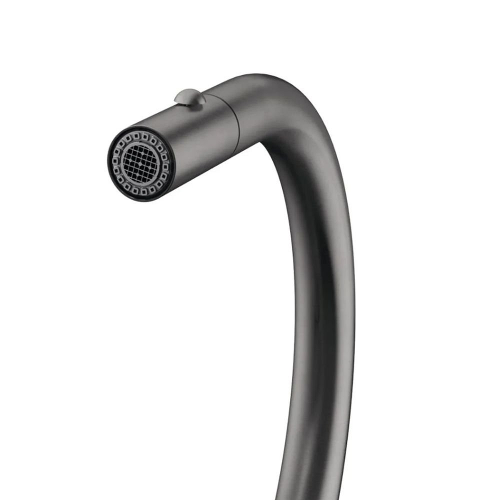 Além de bonito e resistente, o Misturador Antracite é extremamente funcional. Sua mangueira flexível com bica móvel oferece maior alcance e praticidade no dia a dia, ideal para lavar louças grandes, panelas e até auxiliar na higienização da cuba. O duplo jato proporciona versatilidade, unindo conforto e eficiência em cada uso.