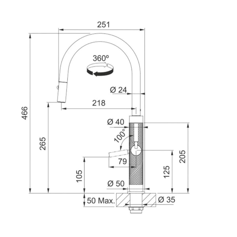 Além de sofisticado, o Misturador Monocomando Cobre é extremamente prático. Equipado com mangueira flexível e sistema de duplo jato, ele proporciona mais conforto na limpeza e versatilidade no preparo dos alimentos. Ideal para quem valoriza conveniência no dia a dia, sua altura imponente facilita o uso em diferentes tipos de cuba e utensílios.