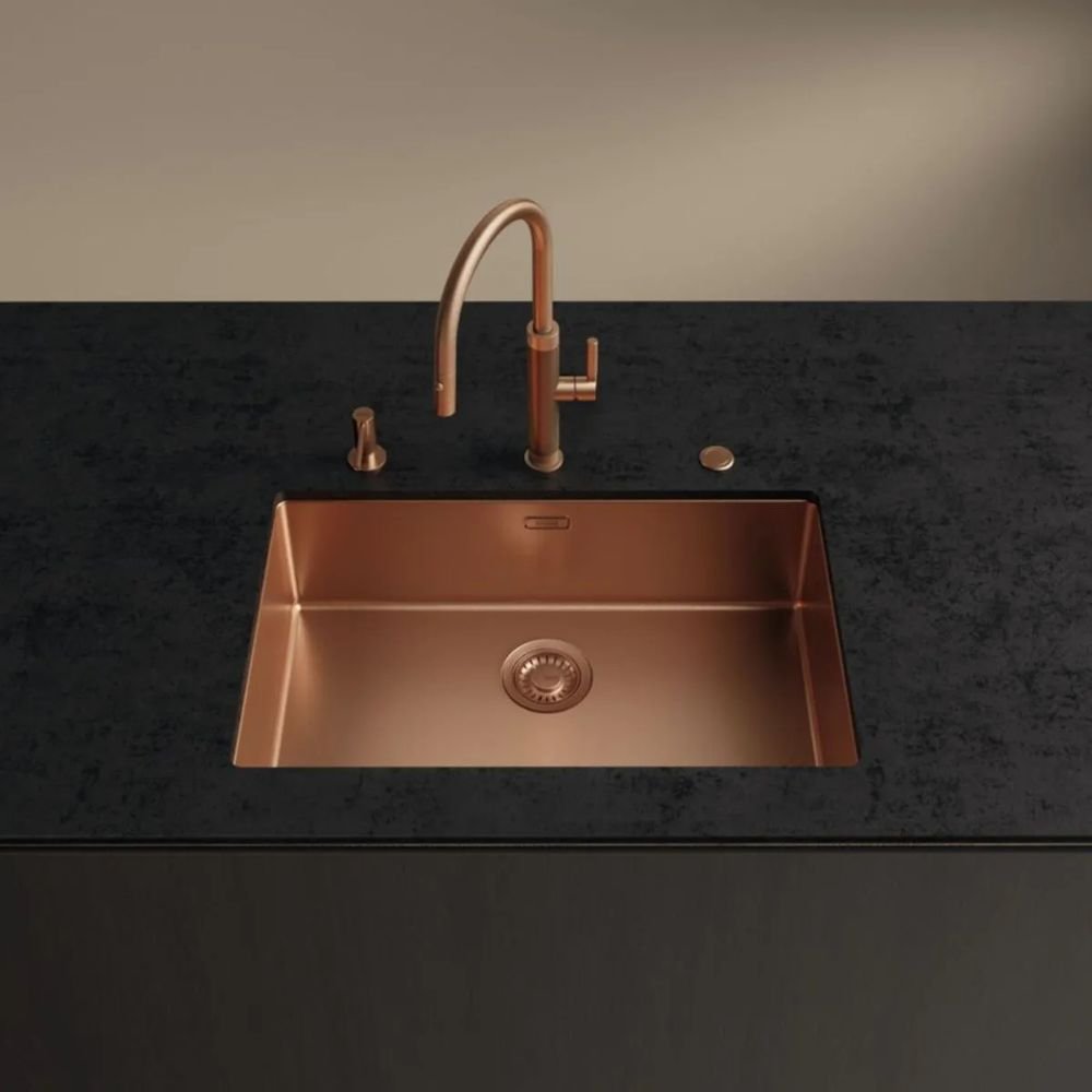 O Misturador Monocomando Franke Masterpiece Cobre é a combinação ideal de sofisticação, funcionalidade e resistência. Criado para quem busca exclusividade e diferenciação na cozinha, ele impressiona pelo acabamento em cobre com tecnologia PVD, que garante brilho intenso, durabilidade da cor e resistência contra riscos e manchas. Sua estética elegante é resultado de um design premiado internacionalmente, que transforma o ambiente em um verdadeiro espaço gourmet.