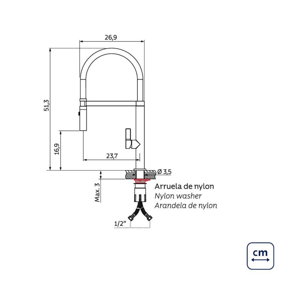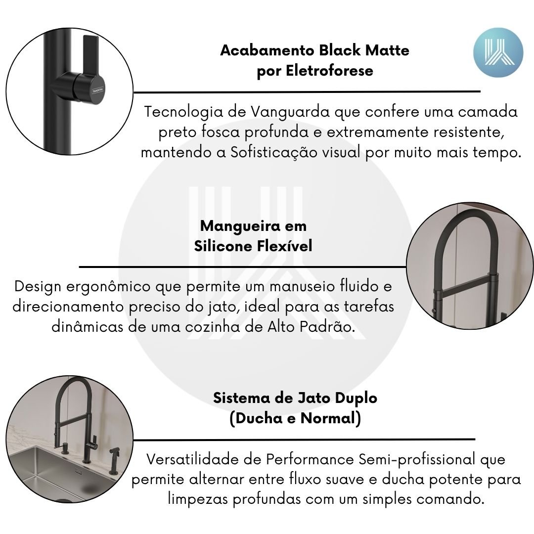 Design ergonômico que permite um manuseio fluido e direcionamento preciso do jato, ideal para as tarefas dinâmicas de uma cozinha de Alto Padrão.
