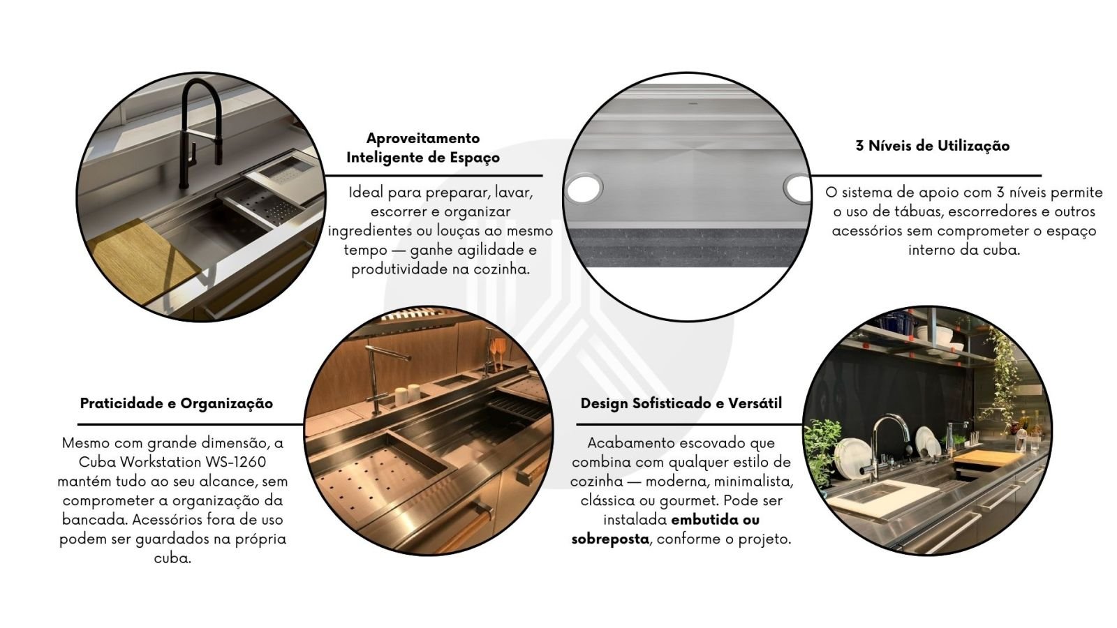 Durabilidade Premium em Aço Inox 304: Fabricada com aço inoxidável escovado de 1,2 mm, a WS-1260 garante resistência à corrosão, impactos e ao uso intenso, mantendo o brilho e a elegância por muitos anos.