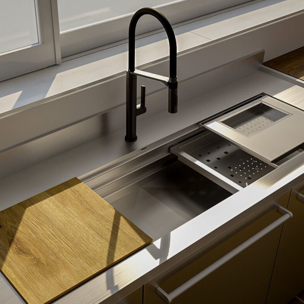 A Cuba Workstation WS-1260 é a combinação ideal entre design moderno, alta funcionalidade e aproveitamento de espaço, oferecendo duas amplas áreas de trabalho e um sistema de 3 níveis que eleva sua experiência na cozinha a um novo patamar. Criada especialmente para quem valoriza praticidade, organização e estética, essa cuba se destaca por sua versatilidade e inovação, mesmo em ambientes com espaço limitado.