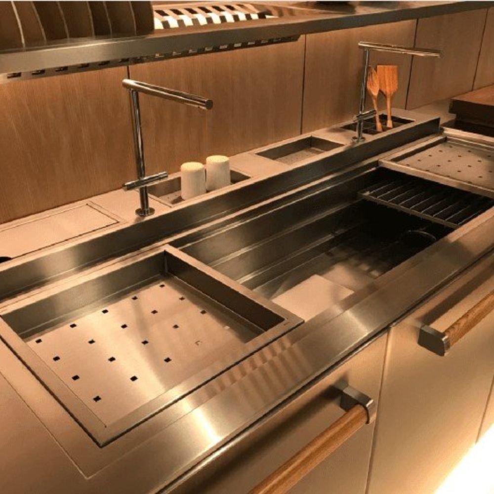 Com impressionantes 1260 mm de comprimento, esta cuba foi projetada para otimizar espaços maiores com eficiência profissional, sendo perfeita para cozinhas gourmet, ambientes integrados ou para quem gosta de receber e cozinhar com mais liberdade. Seu sistema inteligente de 3 níveis permite o uso simultâneo de acessórios em alturas diferentes, possibilitando tarefas múltiplas de forma fluida, prática e organizada.