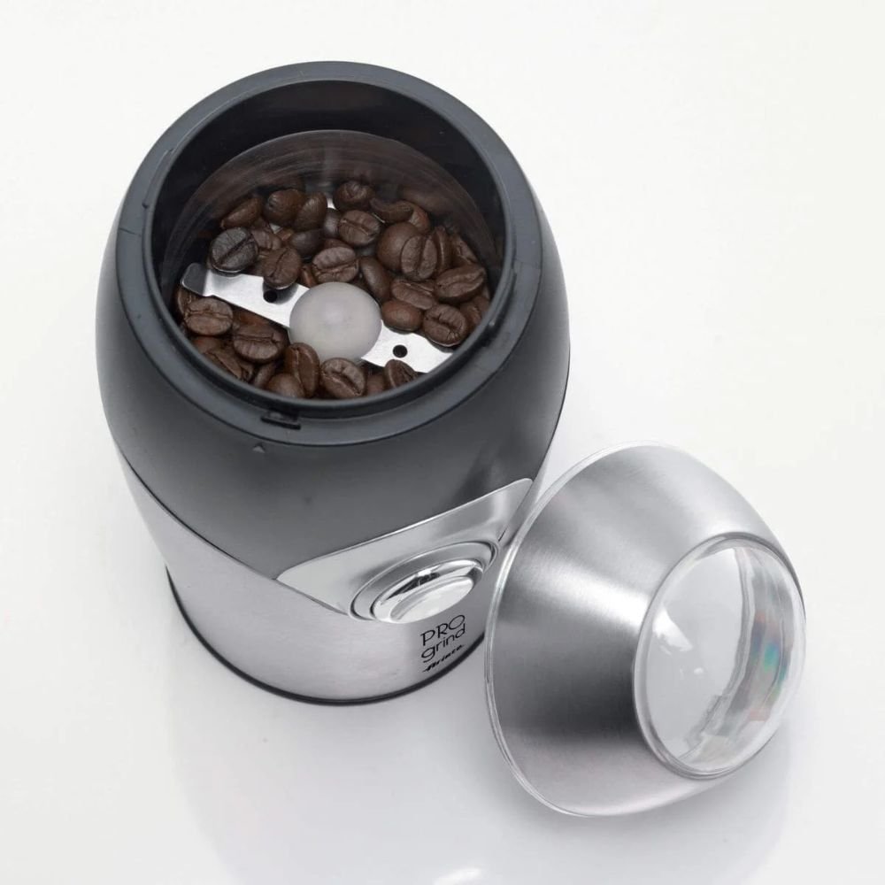 O Moedor de Café Elétrico Ariete 3016 Pro Grind é o acessório indispensável para quem ama o sabor do café fresco moído na hora. Com 150W de potência e lâminas de aço inoxidável, este moedor compacto garante café moído em poucos segundos, preservando o aroma e a intensidade do grão. Seu design elegante em Aço Inox e a capacidade de 35g o tornam o melhor amigo dos amantes do café espresso e ideal para o consumo diário.