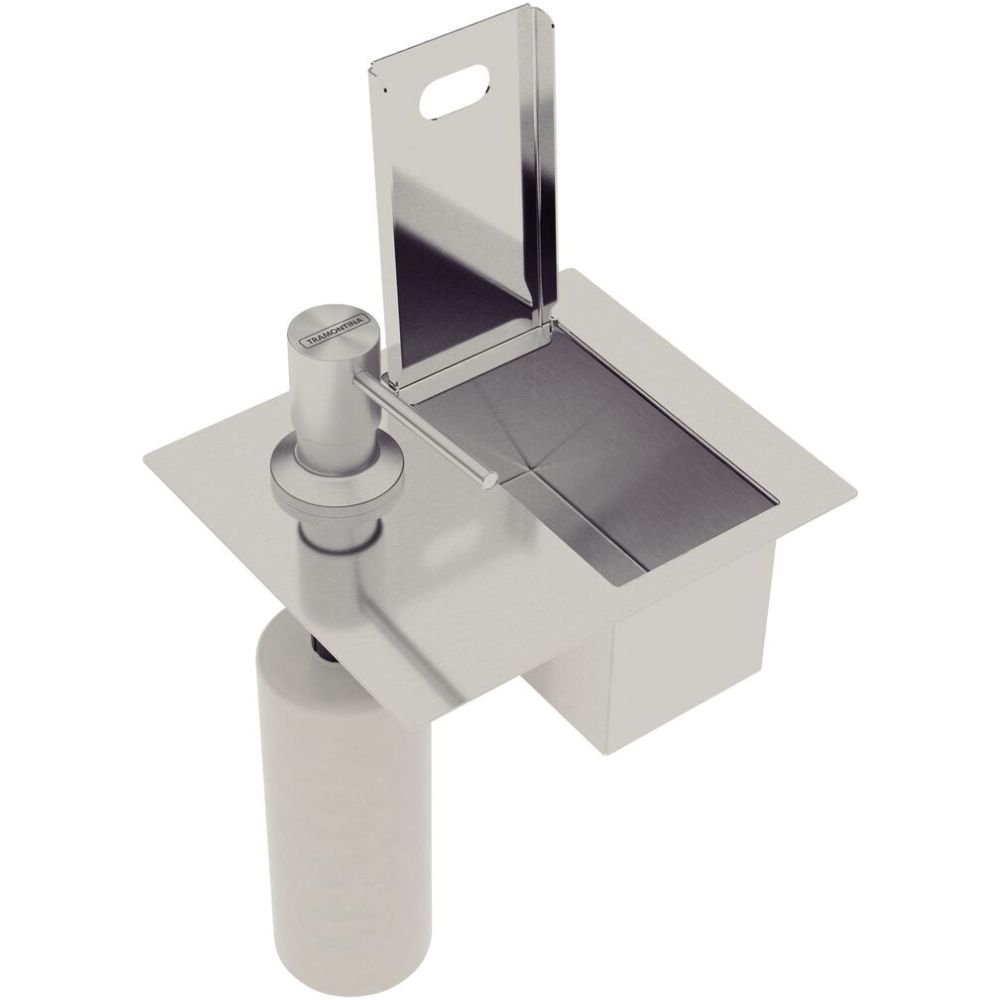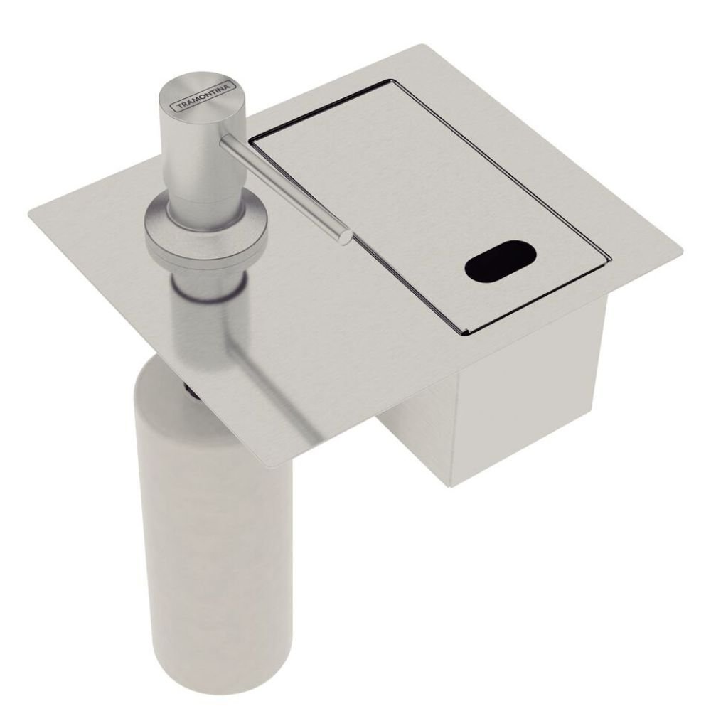 Em cozinhas de Luxo, onde cada detalhe do projeto é pensado para transmitir ordem e elegância, a presença de embalagens plásticas de detergente e esponjas expostas sobre a pedra quebra a harmonia visual e compromete a higiene. O acúmulo de humidade em acessórios soltos não só desvaloriza materiais nobres, como o quartzito ou mármore, mas também cria um aspecto de desorganização. O Porta Esponja de Embutir com Dosador Tramontina é a solução definitiva para libertar a sua bancada. Ao integrar o armazenamento de limpeza diretamente na estrutura da pia, ele entrega uma funcionalidade de Elite que mantém os itens essenciais ocultos sob uma tampa de aço inox, garantindo um ambiente sempre seco, limpo e com o sofisticado que o seu espaço gourmet merece.