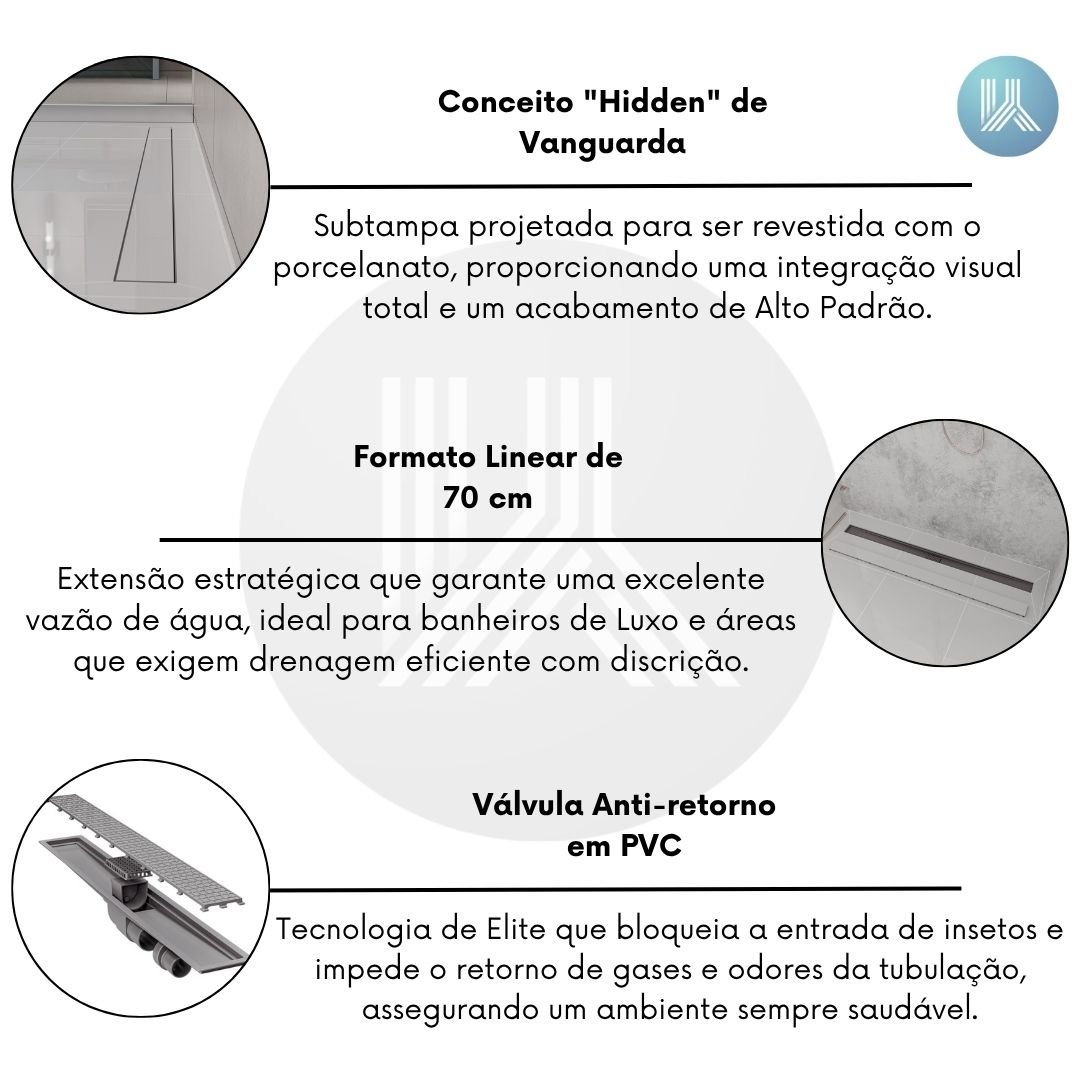 Extensão estratégica que garante uma excelente vazão de água, ideal para banheiros de Luxo e áreas que exigem drenagem eficiente com discrição absoluta.