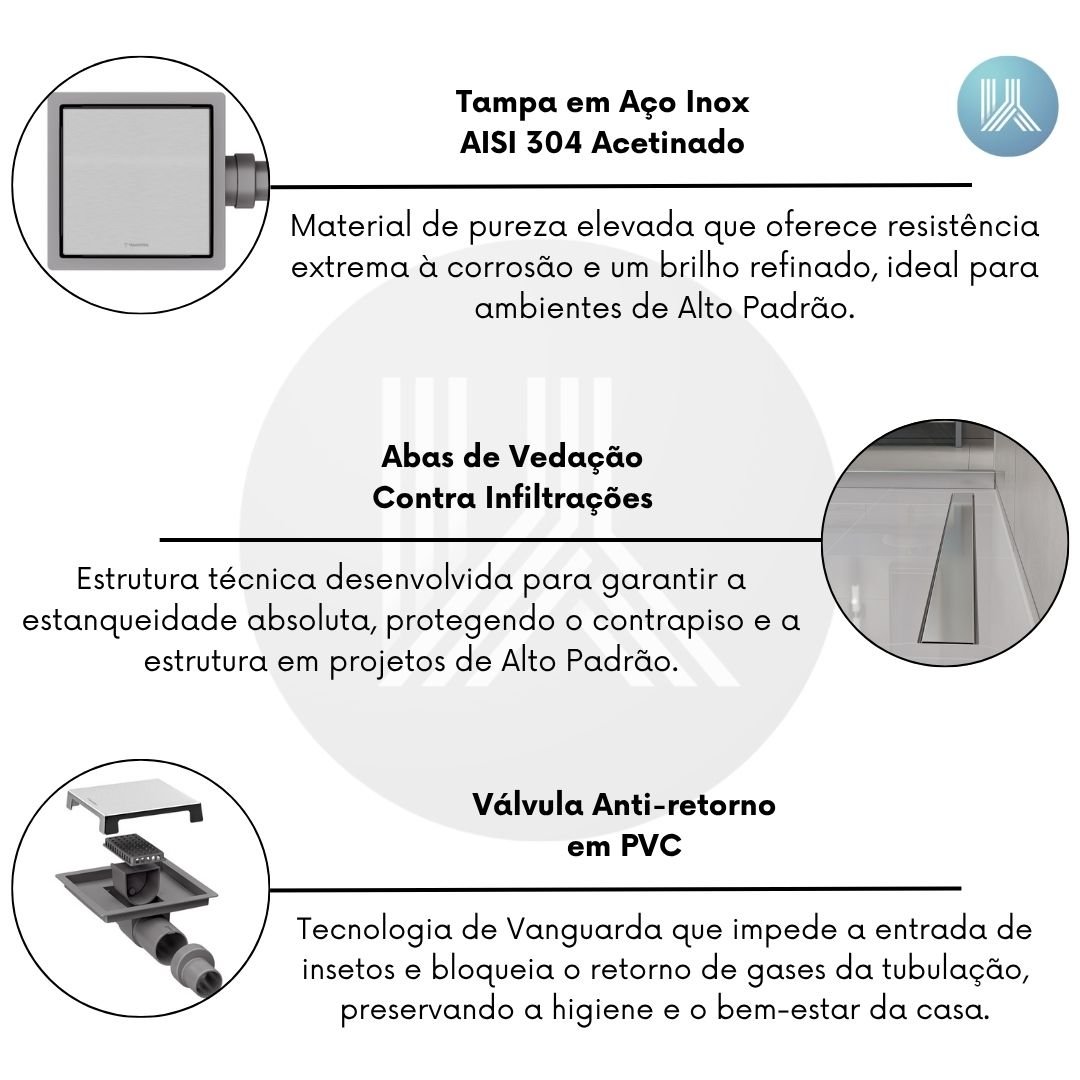Em áreas de serviço, lavanderias gourmet e espaços externos de Luxo, o escoamento eficiente é um desafio que muitas vezes compromete a estética do ambiente. Ralos comuns de plástico ou metal inferior tendem a oxidar, acumular resíduos e permitir o retorno de odores desagradáveis, desvalorizando o Investimento feito no acabamento do piso. O Ralo Neo Square Tramontina de 15 x 15 cm é a solução definitiva para este cenário. Com uma área de captação ampliada e tampa em aço inox acetinado, ele entrega uma Performance Semi-profissional que garante a drenagem rápida de grandes volumes de água, mantendo o ambiente impecável e com o status de Sofisticação que o seu projeto exige.
