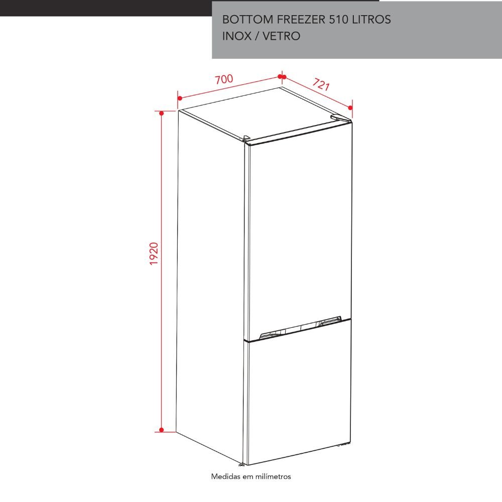 | Capacidade | 510 Litros (Bruto) | 461 Litros (Líquido) |
