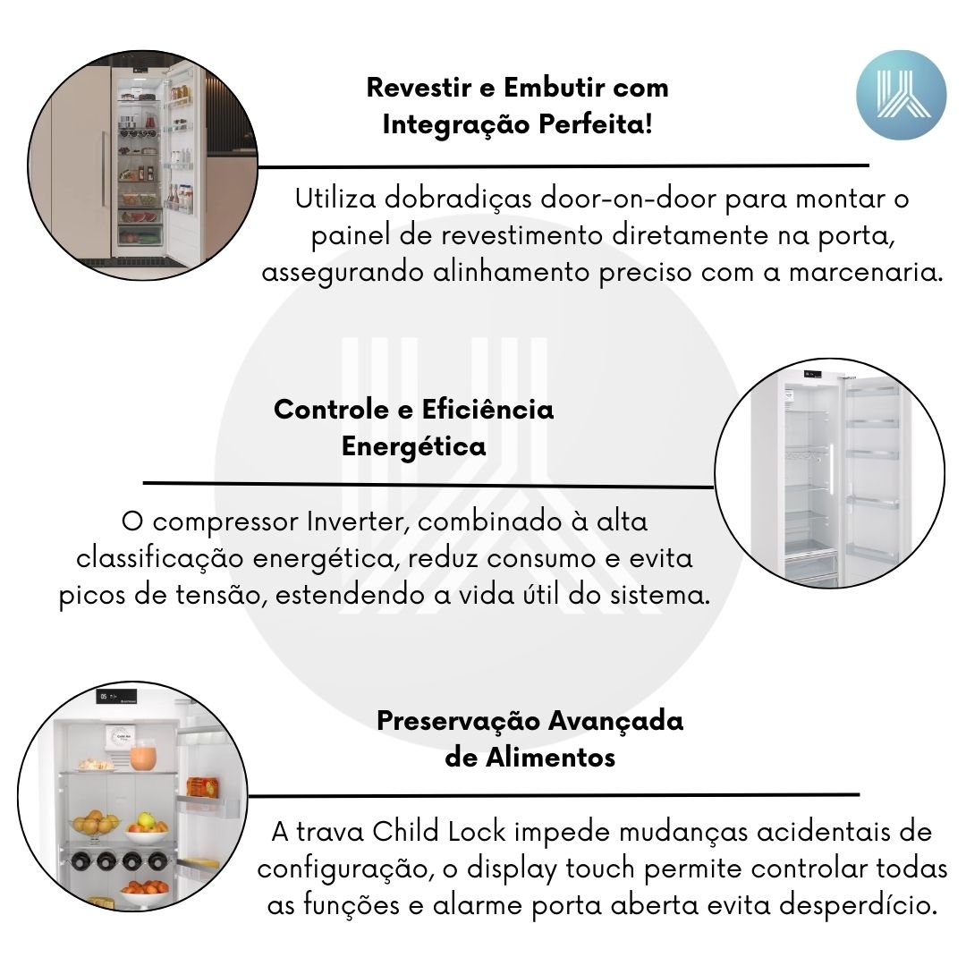 O Refrigerador Revestir Duo 303 litros é a escolha ideal para quem busca unir praticidade, sofisticação e eficiência energética em um único eletrodoméstico. Desenvolvido para oferecer total integração ao ambiente, permite aplicação de revestimento personalizado, alinhando-se perfeitamente ao design da cozinha ou área gourmet. Compacto por fora e espaçoso por dentro, é a solução perfeita para quem valoriza estilo, funcionalidade e inovação em projetos residenciais modernos.