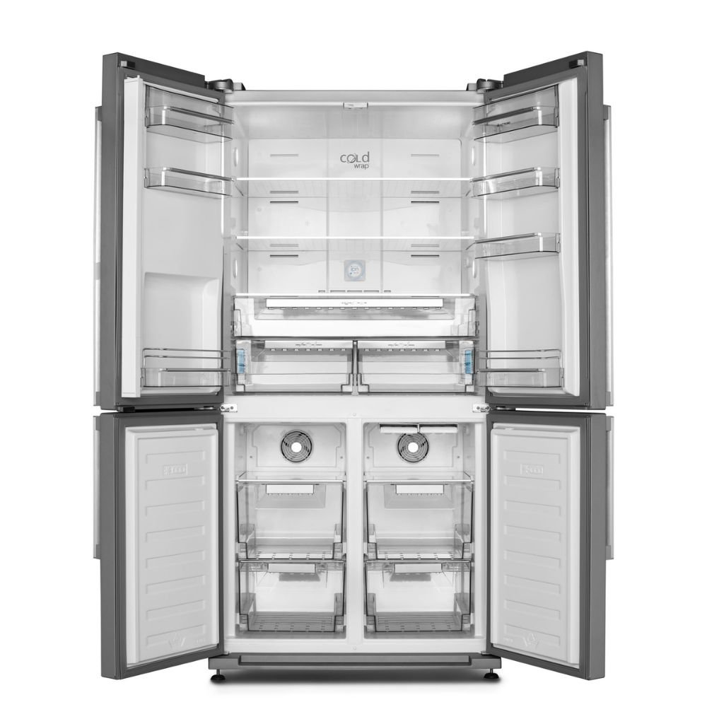 Com 630 litros de capacidade total, sendo 398 L no refrigerador e 190 L no freezer, o modelo garante amplo espaço interno e layout versátil. O acabamento inox com tecnologia Anti-Fingerprint mantém a sofisticação sem marcas de uso, enquanto prateleiras e gavetas com detalhes cromados oferecem resistência e elegância para cozinhas modernas e gourmets.