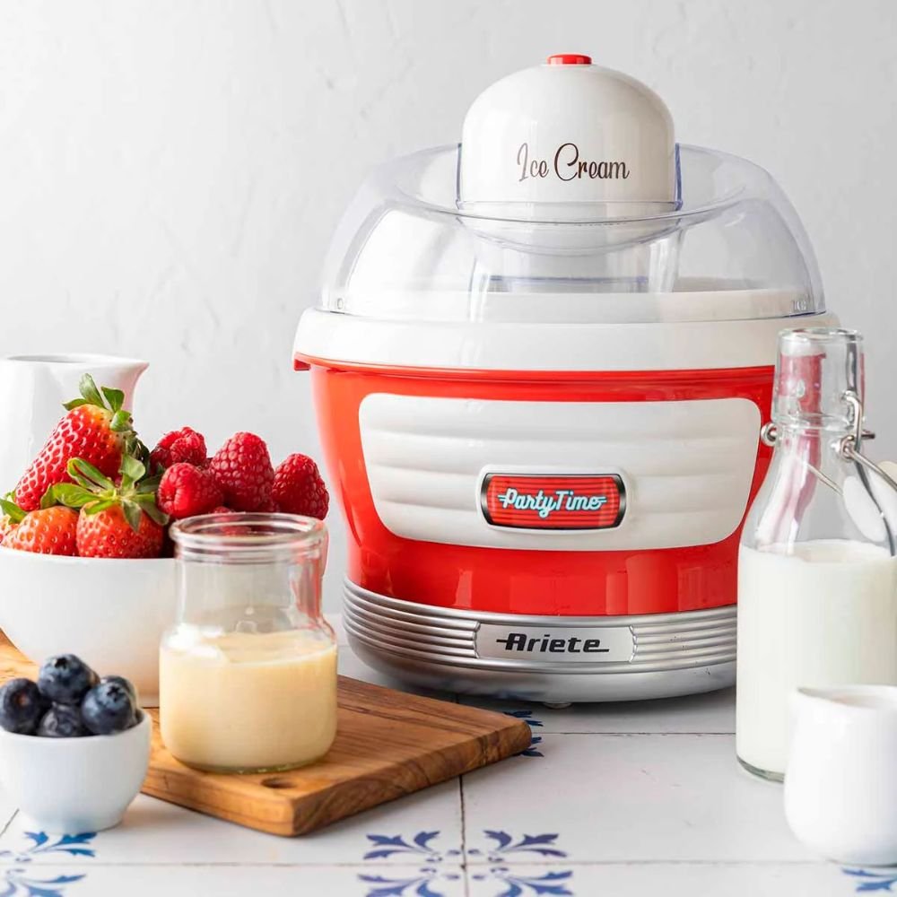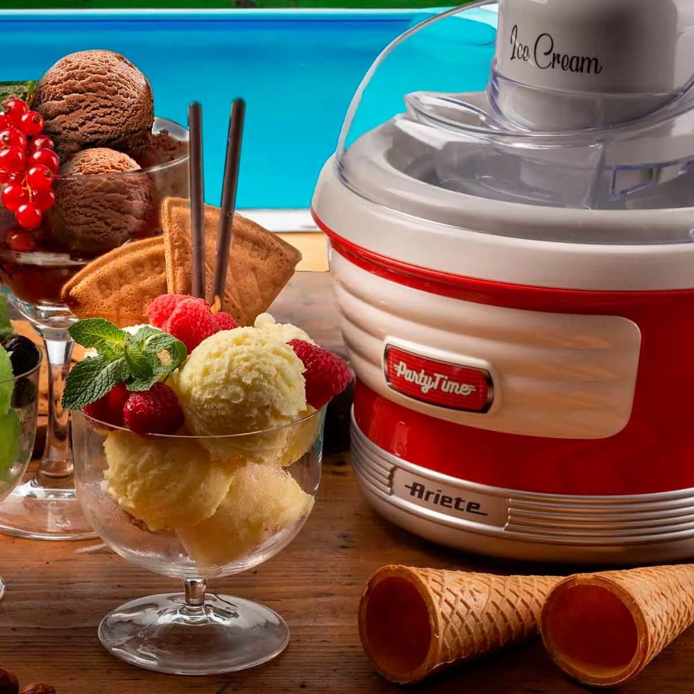 Leve a diversão e o sabor para suas reuniões com a Sorveteira Ariete 643 Party Time. Este aparelho de 1,5 litros de capacidade é a forma mais simples e rápida de preparar suas sobremesas geladas favoritas. Com apenas 12W de potência e uma tigela removível de dupla isolação, você pode criar sorvete de frutas, gelato, sorbet e frozen iogurte cremosos em casa, prontos para serem servidos em aproximadamente 30 minutos. É o complemento perfeito para qualquer festa!