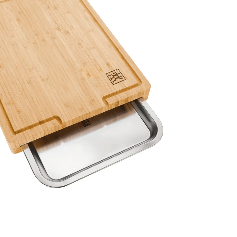 Com bandeja deslizante em aço inoxidável 18/10, permite separar ingredientes, coletar restos ou servir alimentos com agilidade. Além disso, conta com ranhuras que coletam os sucos da carne e pés antiderrapantes para maior segurança durante o uso — tornando-se indispensável em churrascos e cozinhas do dia a dia. Organização e praticidade a bandeja em aço inox 18/10 que desliza para separar, recolher ou servir ingredientes, a tábua ZWILLING produzida em bambu certificado FSC, unindo resistência e compromisso ambiental. Superfície estável e durável ideal para cortar até os maiores cortes de carne sem danificar a tábua. Retêm os sucos do alimento, evitando sujeira e facilitando o preparo, possui também pés antiderrapantes que mantêm a tábua firme sobre qualquer superfície
