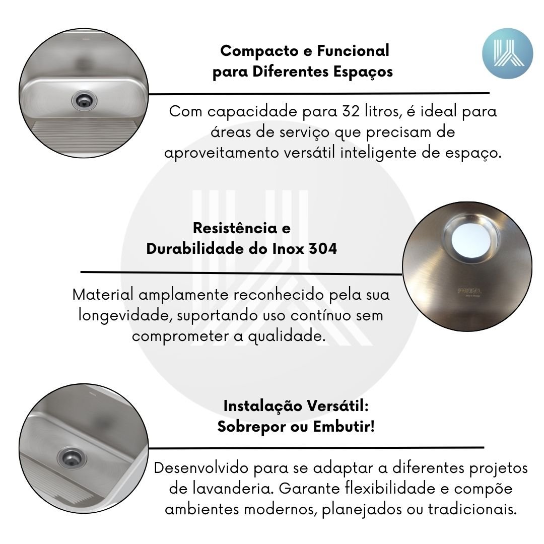 Além da robustez, o acabamento escovado artesanal confere ao tanque uma estética refinada, que harmoniza facilmente com móveis e bancadas. Sua superfície lisa facilita a limpeza, necessitando apenas de água e sabão para manter o brilho e a higiene, evitando manchas e acúmulo de resíduos. O esfregador inclinado interno é outro diferencial que proporciona maior ergonomia e praticidade no uso diário.