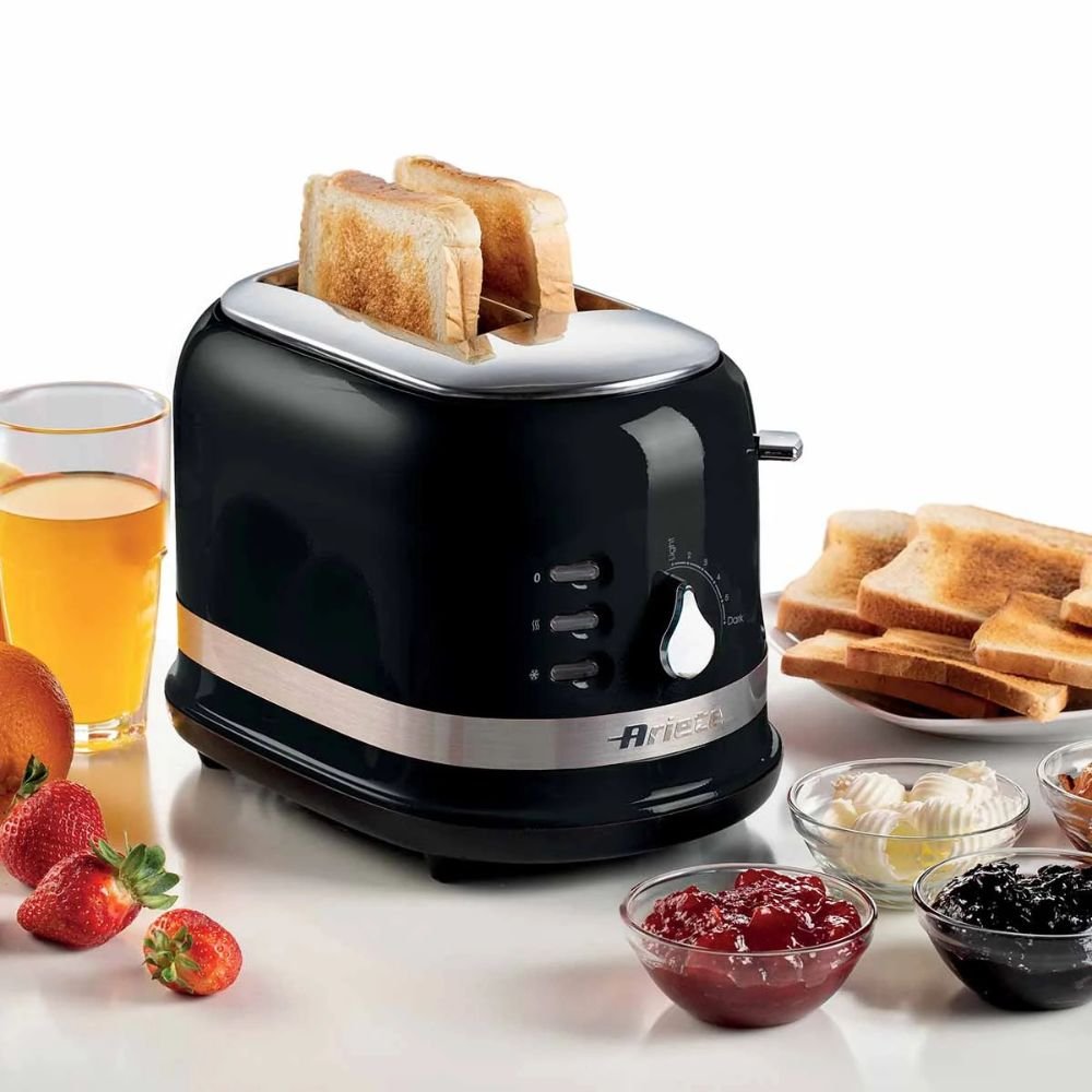 A Torradeira Elétrica Ariete 149 Moderna Preta é a combinação ideal de elegância e alta performance, essencial para um café da manhã moderno e funcional. Com 750W de potência, este aparelho com Corpo em Aço Inoxidável é projetado para torrar 2 fatias de pão de forma impecável, permitindo a escolha de 6 Níveis de Tostagem ajustáveis. Além disso, a torradeira de 2 fatias possui funções inteligentes de descongelar e reaquecer, simplificando o seu dia a dia na cozinha.