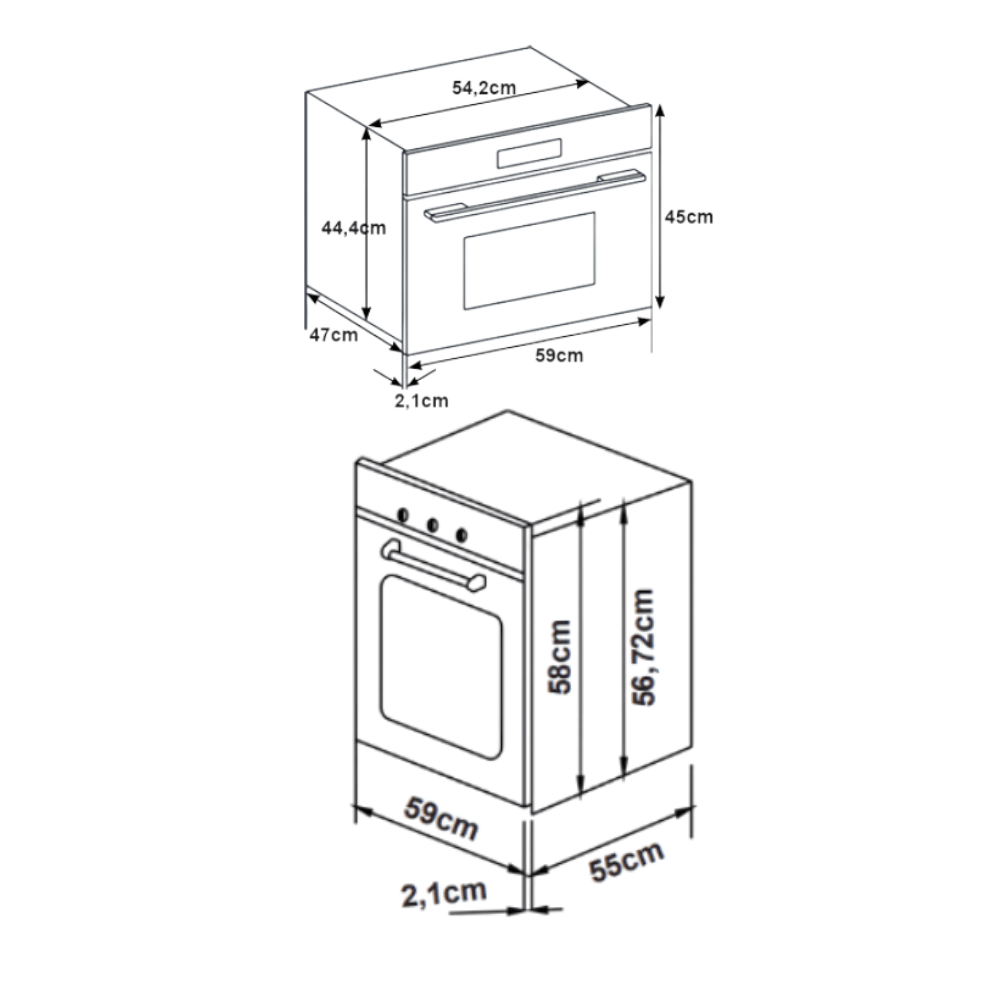 Design Sofisticado e Funcional: Acabamento em aço inox e vidro preto, projetados para embutir em cozinhas planejadas com estilo e durabilidade.