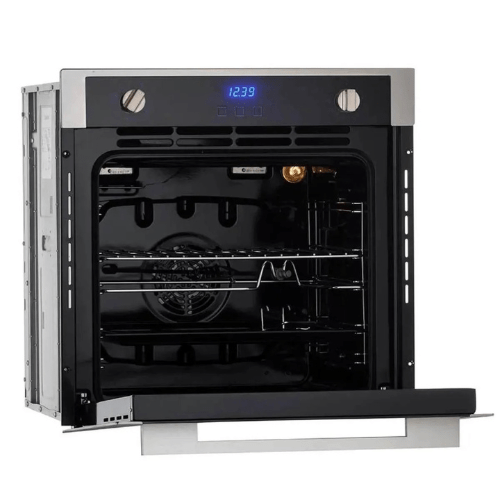 Sobre o Forno e Grill Elétrico (83 Litros): O forno principal oferece ampla capacidade de 83 litros e performance profissional. Com 8 funções de cozimento, ele inclui sistema de convecção (que melhora a circulação de calor para um cozimento uniforme), Grill Elétrico e um exclusivo Espeto Rotisserie giratório, ideal para assar carnes e aves de forma perfeita. A limpeza é prática graças às paredes internas com revestimento de esmalte e à porta removível com vidro triplo, que pode ser limpa facilmente com água quente e detergente.