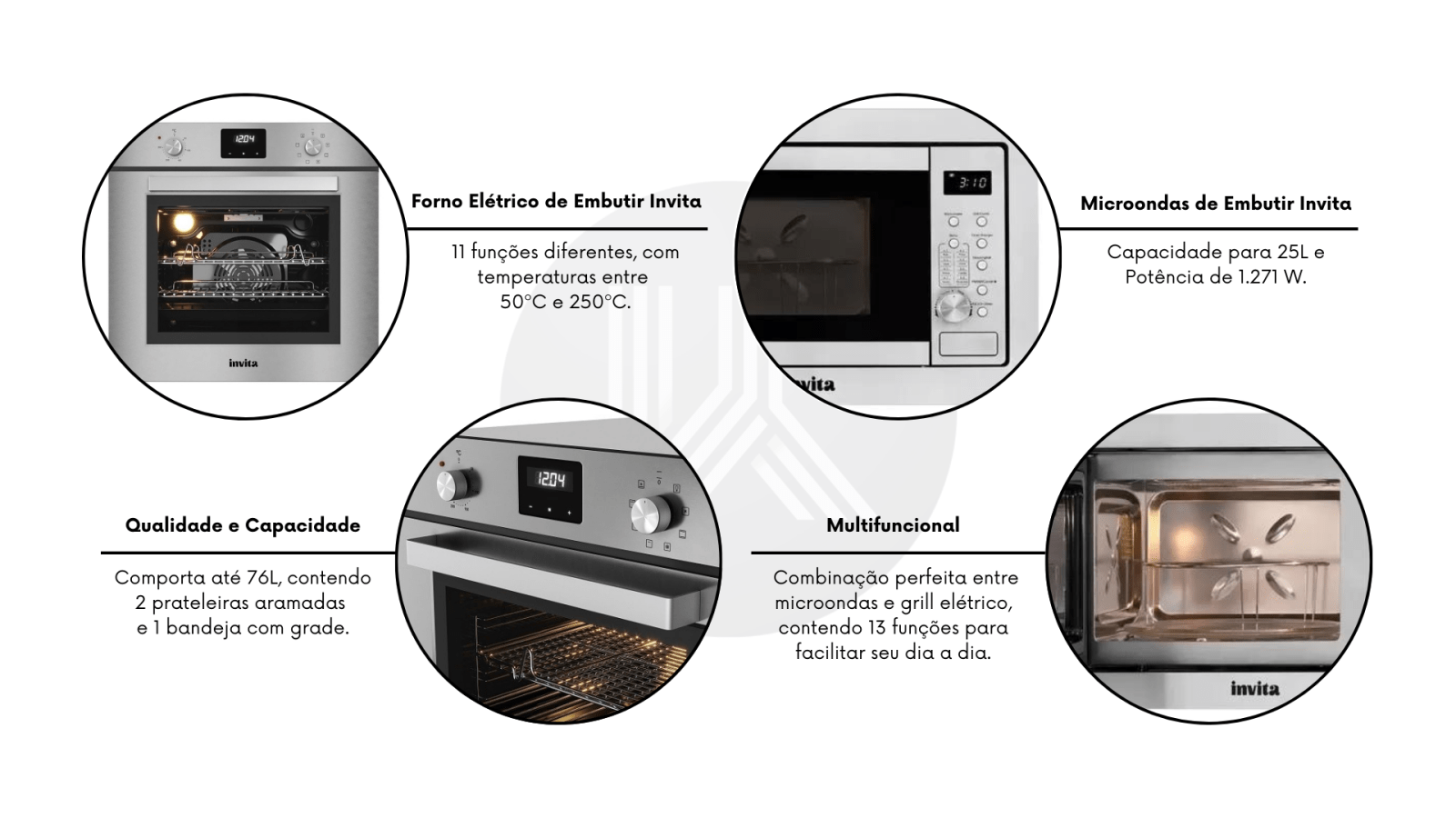 Micro-ondas de Embutir Invita em Inox Multifuncionalidade Gourmet 60cmCor: Inox Escovado Opção: 220VForno Elétrico Invita em Inox com Convecção 76L 220vCor: Inox Escovado Opção: 220V