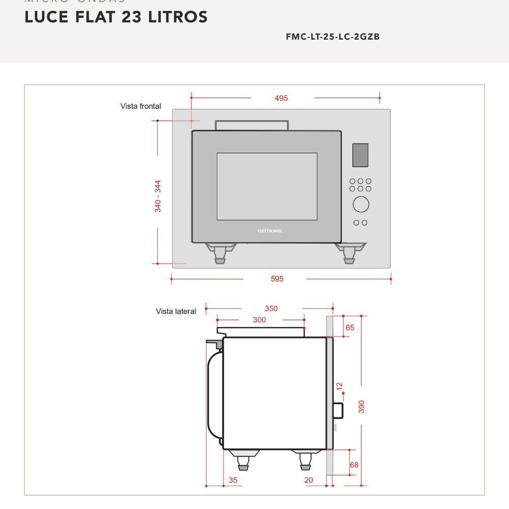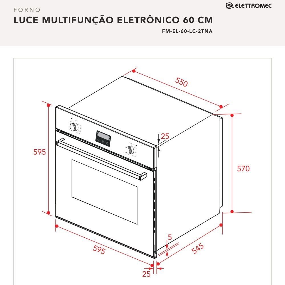 Forno Elétrico de Embutir Luce Elettromec Multifunção Inox 68L 60cm 220V Quant: 1xMicro-ondas de Embutir Luce Flat Elettromec Função Combinada 23L 220V Quant: 1x - Garantia: 2 anos