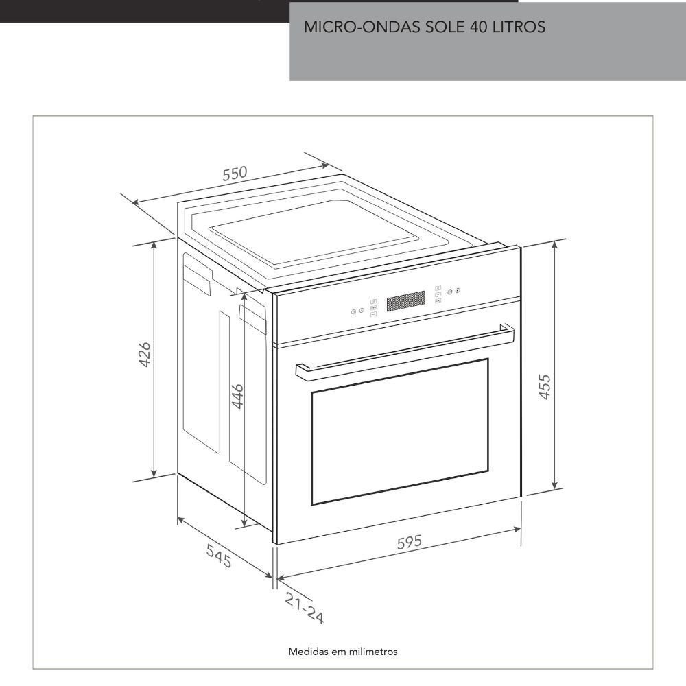Forno Elétrico de Embutir Sole Elettromec Multifunção Digital 67L 60cm 220VCor: Inox EscovadoForno Micro-ondas Combinado Sole Elettromec 40 Litros 60cm 220VCor: Inox Escovado | Tamanho: 220VGaveta Aquecida Elettromec 6 Serviços Built-in 14cm 220VCor: Inox Escovado - Garantia: 2 anos