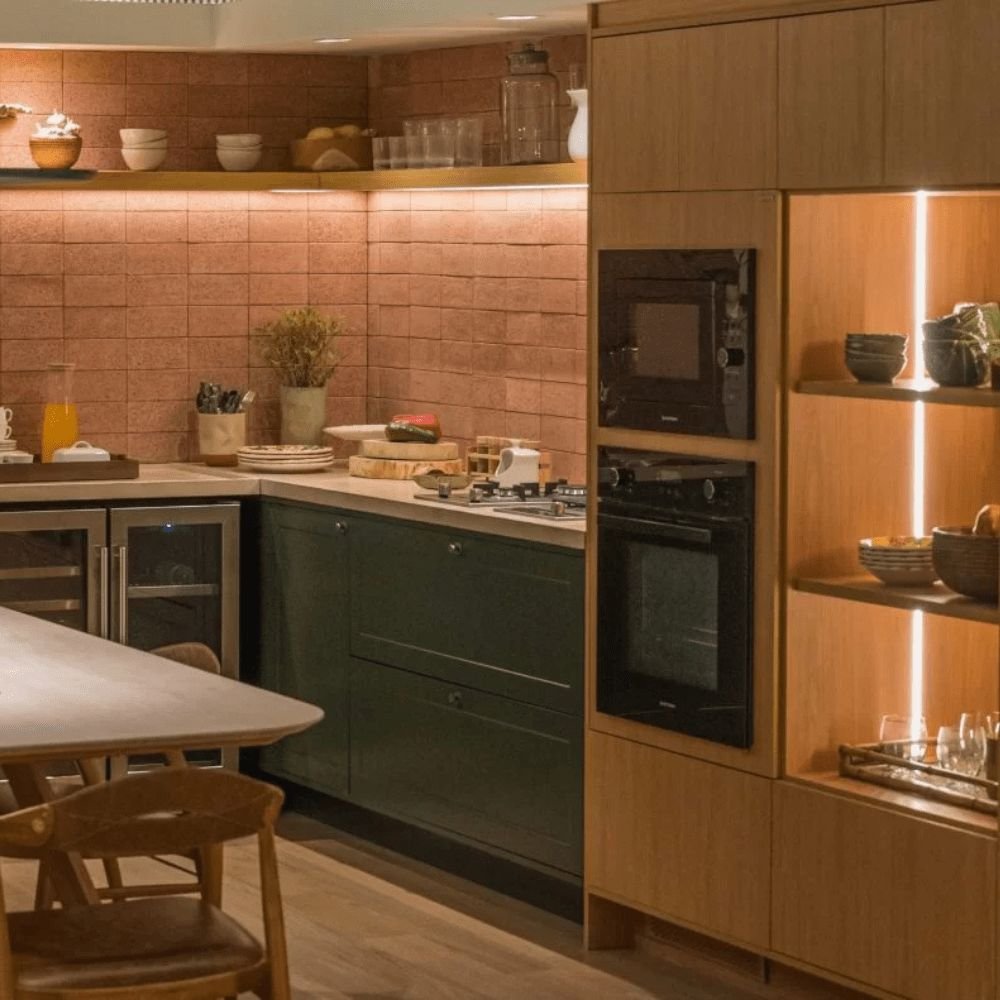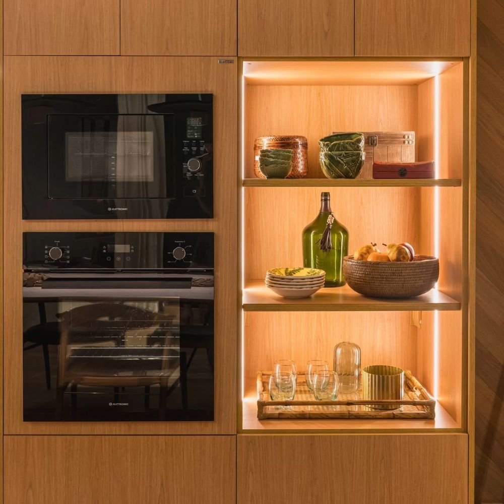 Os dois eletros possuem acabamento premium em vidro preto e linhas minimalistas, harmonizando perfeitamente quando instalados juntos em torre quente. Essa integração não apenas valoriza o design da cozinha, mas também otimiza espaço, mantendo estética sofisticada e funcional.