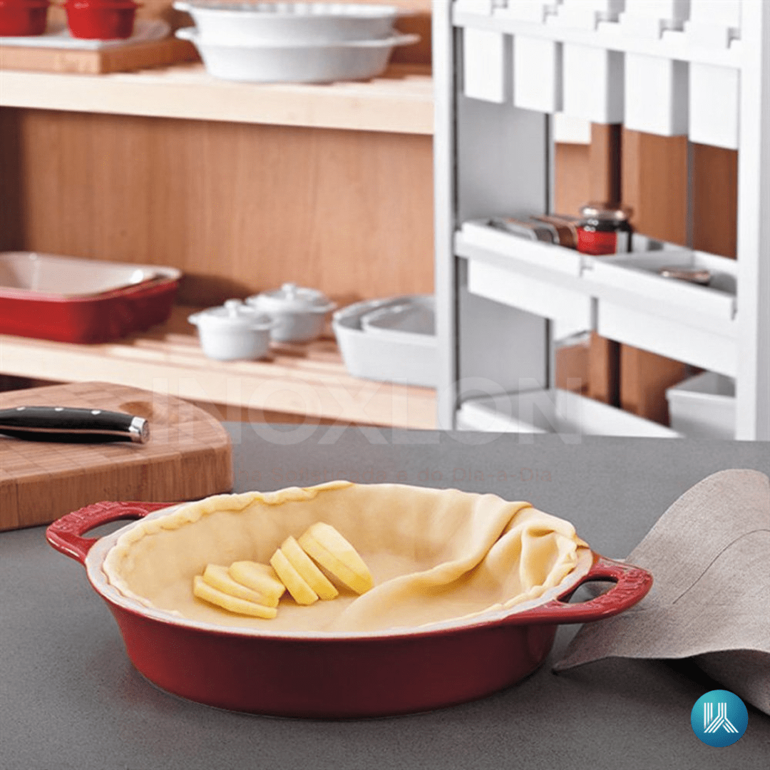Para otimizar o espaço em sua cozinha planejada, as travessas podem ser empilhadas. É importante apenas evitar o choque térmico ao retirar o produto do forno ou freezer e nunca usar diretamente na chama do fogão.