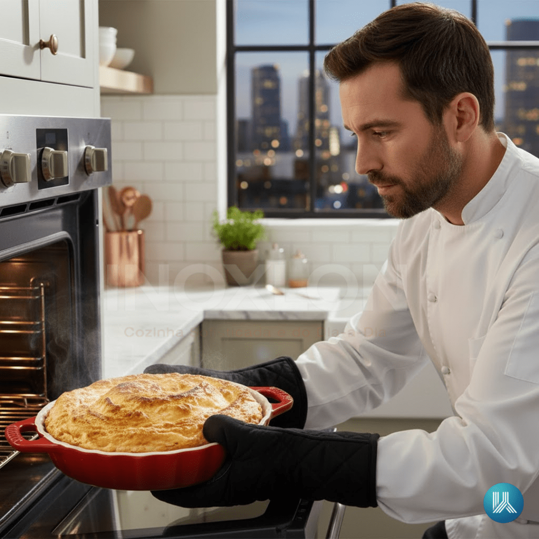 Performance Térmica Extrema: A cerâmica soluciona o problema da versatilidade, resistindo a temperaturas de -20°C a +200°C, ideal para preparos que exigem congelamento e forno.
