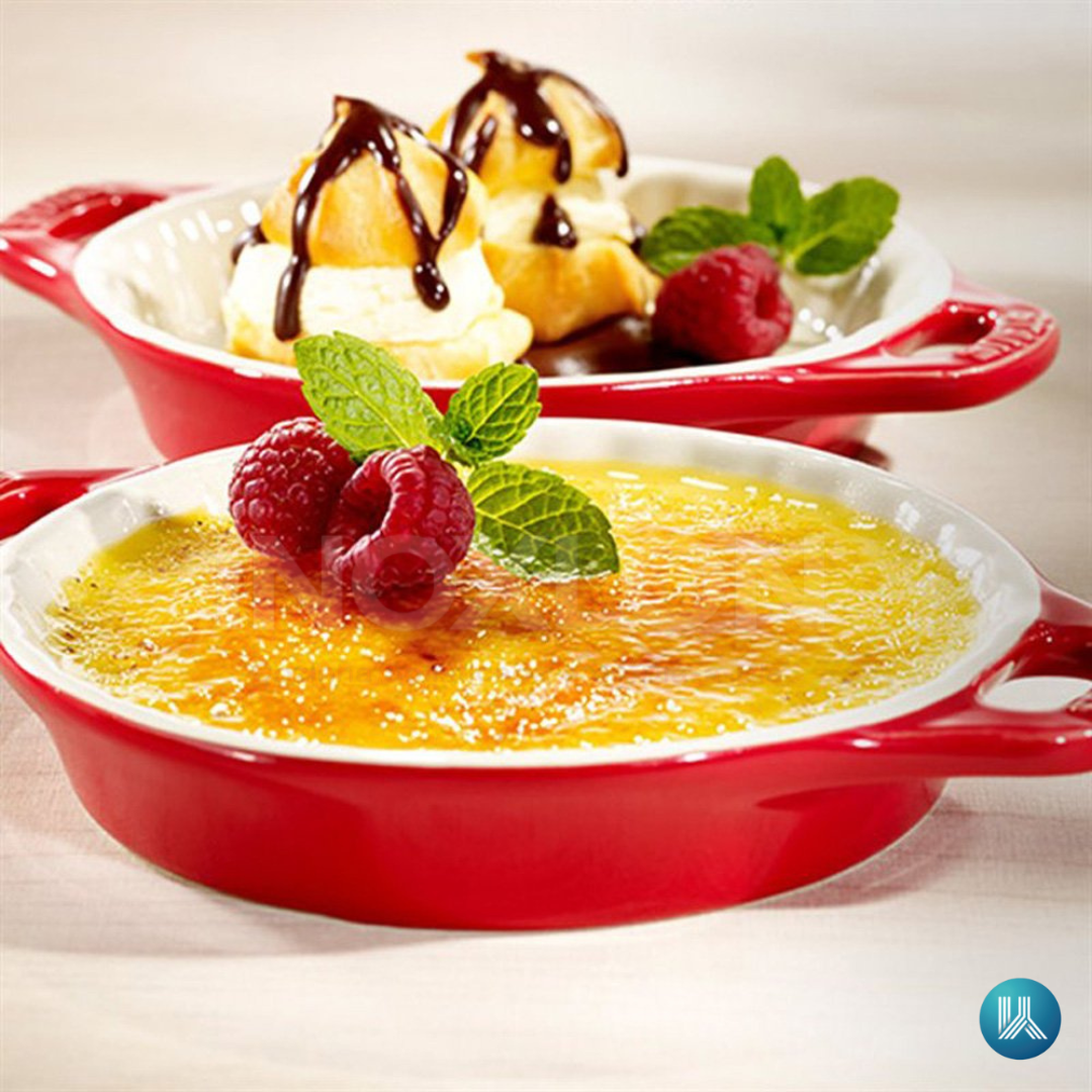Estética de Destaque (Vermelho Cereja): O recipiente com cores vivas e acabamento em esmalte é um diferencial de luxo que transforma a travessa em uma peça de apresentação que transita lindamente para a mesa.